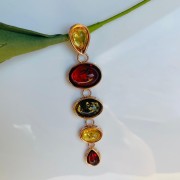 Позолоченный серебряный трейлер с янтарным триколором. Очаровательный трейлер, изготовленный из золота 925 серебряного и уникального янтаря, с этим удивительным «кусочком солнца», который играет со всеми медом, коньяком и зелеными тонами.