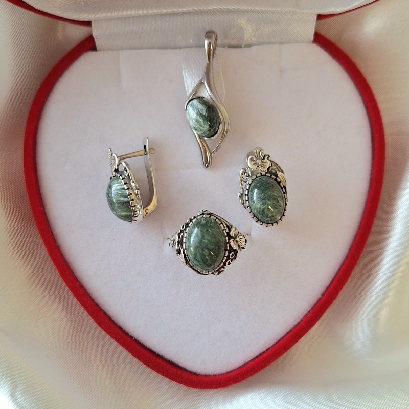Клинохлор, также называемый серафинитом, представляет собой голубовато-зеленый камень с серебристым или золотистым отливом. Светлые узоры на поверхности минерала напоминают отпечатки перьев ангелов (серафимов). Красивый серафинит с «ангельским» или «морозным» узором может стать популярным украшением и хорошим подарком близкому человеку.
