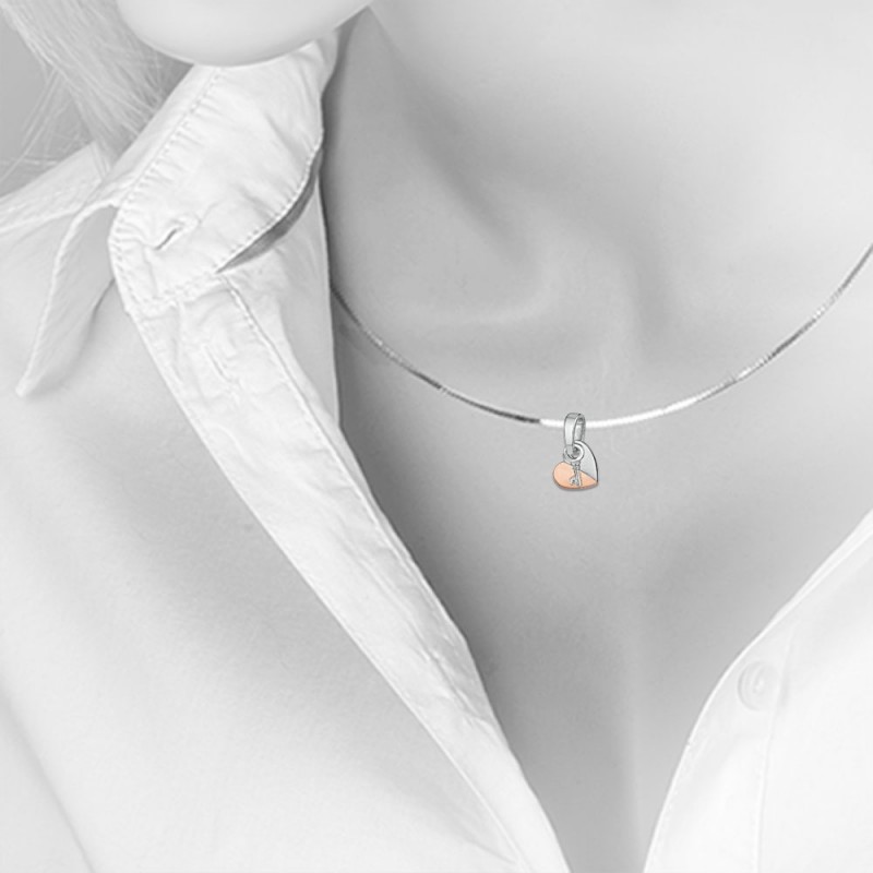 Серебряный кулон в форме сердца с ключом и вставкой из сверкающего циркония. Серебро 925 пробы и
