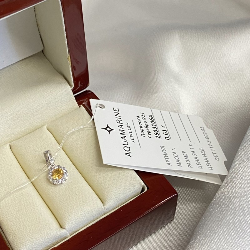 Очаровательный серебряный кулон со вставкой из солнечного цитрина и сверкающих цирконий. Серебро 925 пробы. Идеальное романтическое дополнение к вашему образу!