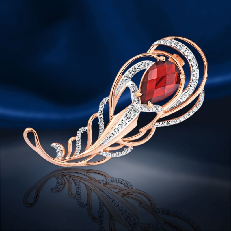 Очаровательная брошь из позолоченного серебра 925 пробы, украшенная циркониями и гранатами.