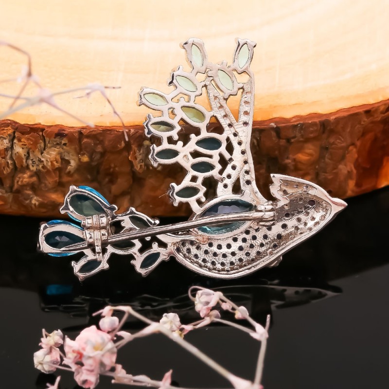 Очаровательная брошь из серебра 925 пробы с родиевым покрытием, украшенная сверкающими циркониями и альпанитом. Серебряные броши с
