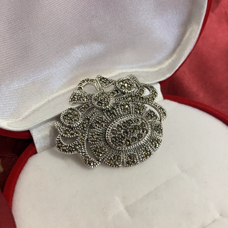 Очаровательная брошь из серебра 925 пробы, украшенная глубоким марказитом. Серебряные броши не только подчеркивают красоту и изящество своей обладательницы, но и служат прекрасным дополнением к любому наряду и приносят радость от ношения.