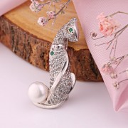 Родиевое покрытие! Очаровательная брошь из серебра 925 пробы, украшенная сверкающими разноцветными циркониями и искусственным культивированным