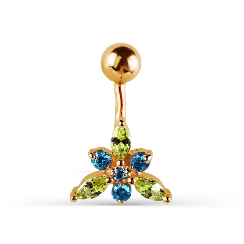 красного золота 585 пробы. Золотой пирсинг со сверкающими разноцветными циркониями! Красное русское золото 585°.