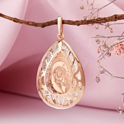 красного золота 585 пробы - высококачественный православный золотой кулон. Золотой кулон выполнен в форме капли и имеет нежную поверхность с алмазным напылением, обеспечивающим дополнительный блеск и светоотражение.