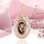 Изображение выгравировано спереди. На оборотной стороне подвески надпись: «Икона Казанской Божией Матери, Пресвятая, спаси нас».