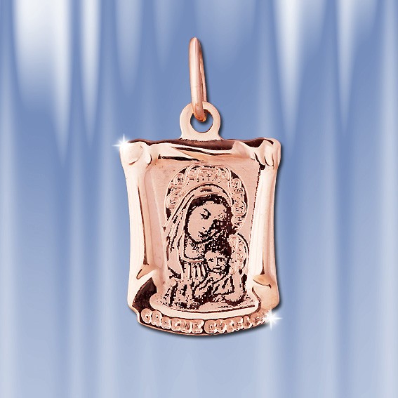 Золотой кулон-икона из русского красного золота 585 пробы. Высота подвеса с петелькой ок. 25 мм., ширина ок. 13 мм.
