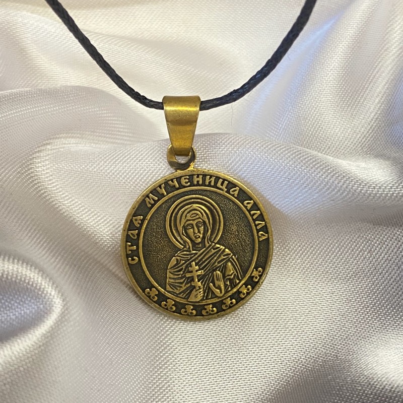 Бронзовая подвеска-икона на прочном черном шнуре.