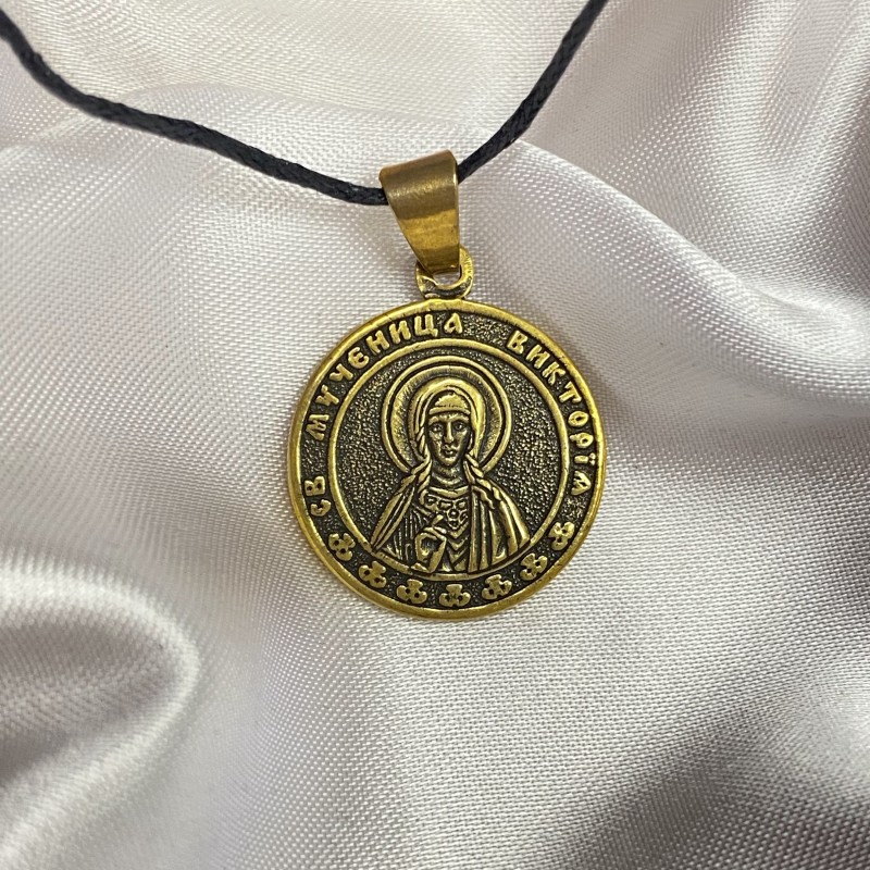 Бронзовая подвеска-икона на прочном черном шнуре.