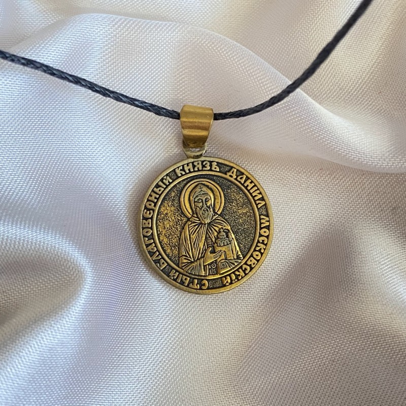 Бронзовая подвеска-икона на прочном черном шнуре.