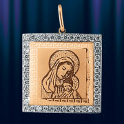 Кулон-икона Русское золото 585° с цирконом, двухцветный. Высота подвешивания с петелькой ок. 30 мм, ширина ок. 22 мм. .