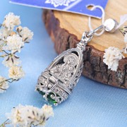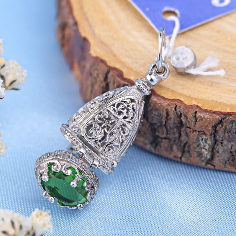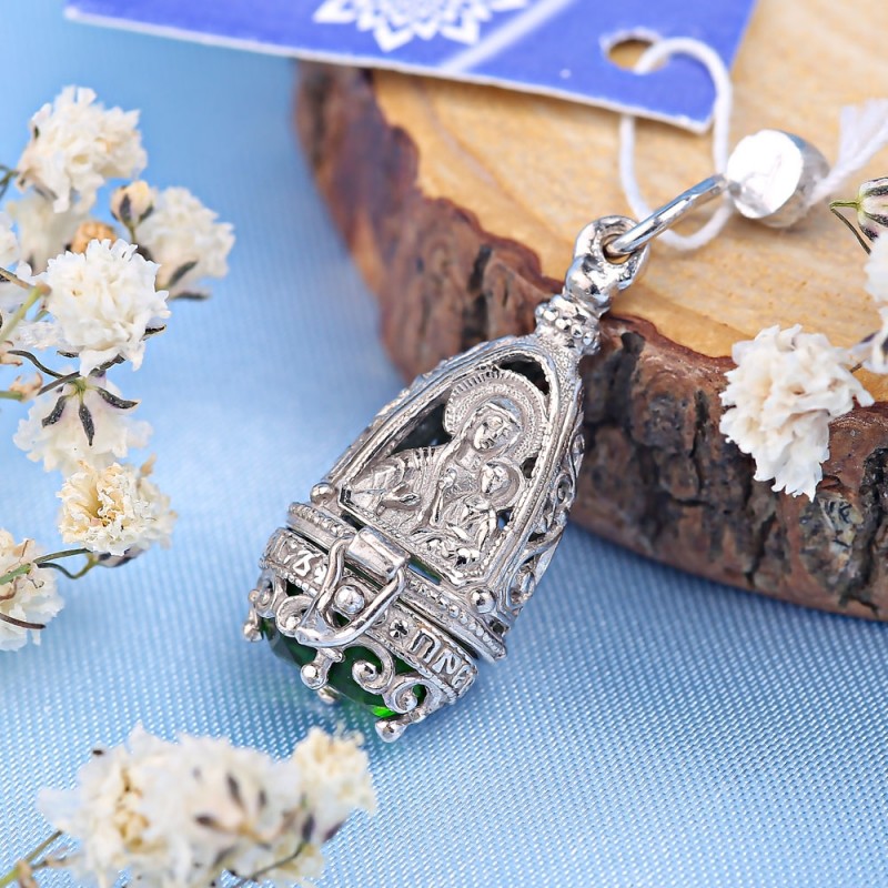 Серебряный кулон-оберег со значком из серебра 925 пробы с родиевым покрытием и вставкой из зеленого циркония.