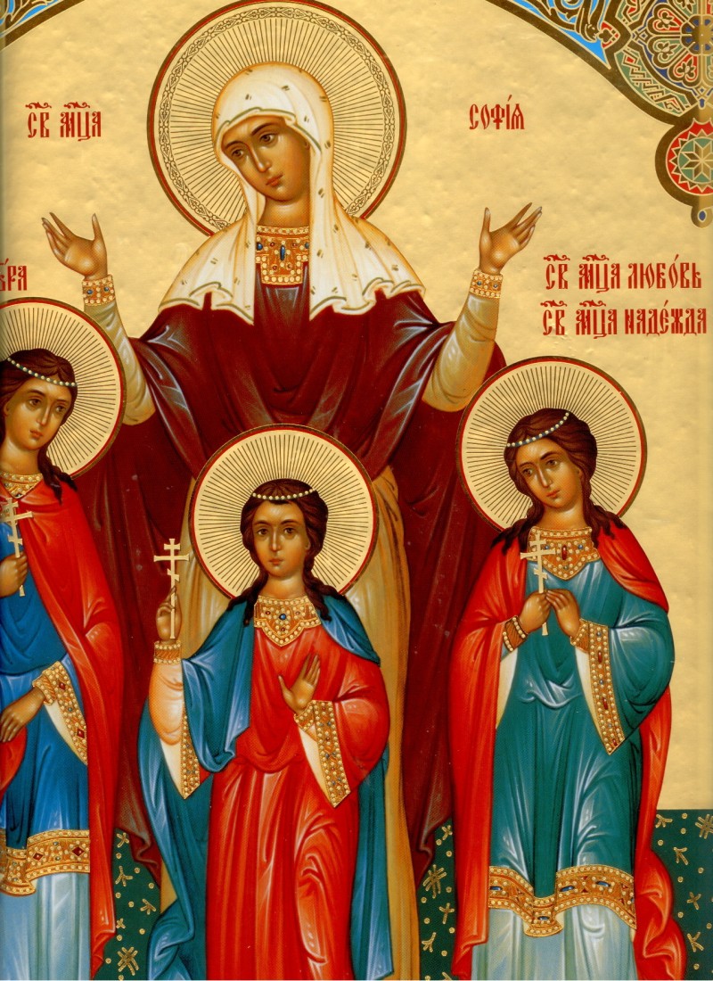 «Пойду с радостью к моему любимому Богу Спасителю», — сказала Святая Вера. Она храбро склонила голову под меч и таким образом предала дух богу. Младшие сестры Надежды и Любви, воодушевленные мужеством старшей сестры, претерпели аналогичные муки. Огонь не причинил им никакого ущерба, тогда они отрубили им головы мечом. Святая София не подверглась физическим мучениям, но обрекла ее на еще более тяжелые сердечные муки от расставания с мучившимися детьми. Святитель похоронил честные трупы дочерей и два дня не покидал их могилы. На третий день Бог послал ей тихую кончину и забрал ее многострадальную душу в небесную обитель. Святая София, претерпевшая великие сердечные муки за Христа, канонизируется вместе с дочерями Церкви. Они страдали 137 лет. Старшей Вере тогда было 12 лет, второй, Надежде, - 10, а младшей, Любови, - всего 9 лет. Таким образом, три девушки и их мать продемонстрировали, что для людей, поддержанных блаженством Святого Духа, недостаток физических сил не служит препятствием к проявлению силы духа и мужества. По их святым молитвам Бог укрепит нас в христианской вере и в добродетельной жизни.