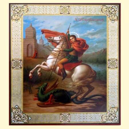 Икона "Георгий Победоносец" 30х40 см, деревянная, двойное тиснение. Икона – создательница драмы Серафимы Саровской. Софрино.