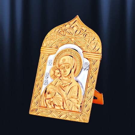 Кулон-икона из позолоченного серебра 925°. Длина около 48 мм, ширина около 30 мм.