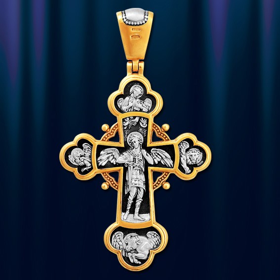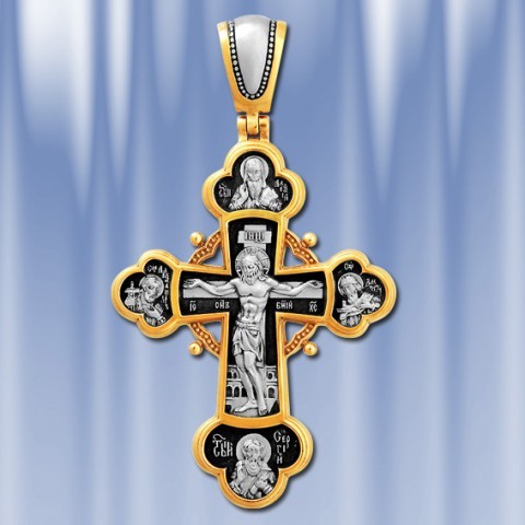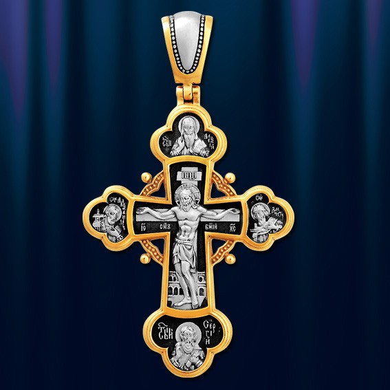 Крест-подвеска из позолоченного серебра 925 пробы. Длина с ушком ок. 60 мм, ширина ок. 34 мм.