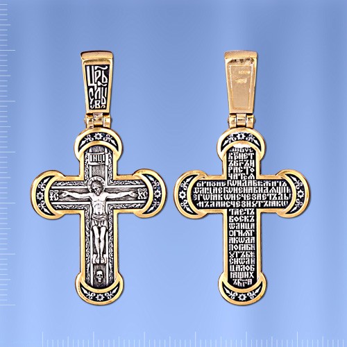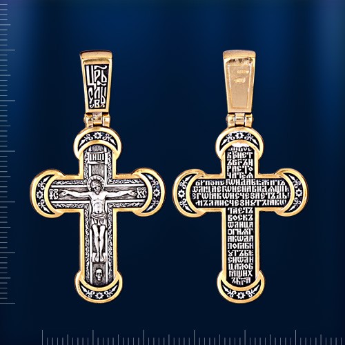 Крест-подвеска из серебра 925° с позолотой 999°. Длина с ушком ок. 50,0 мм, ширина ок. 26,0 мм