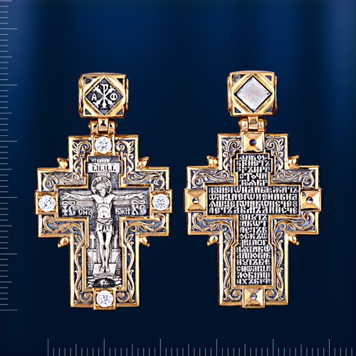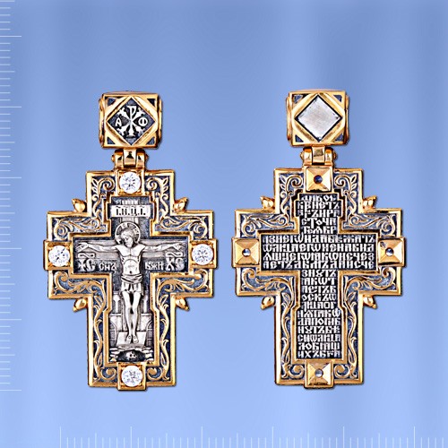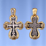 Крест-подвеска из серебра 925° с позолотой 999°. Длина с ушком ок. 42,0 мм, ширина ок. 24,0 мм, 4 фианита ¢ 3,0 мм