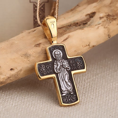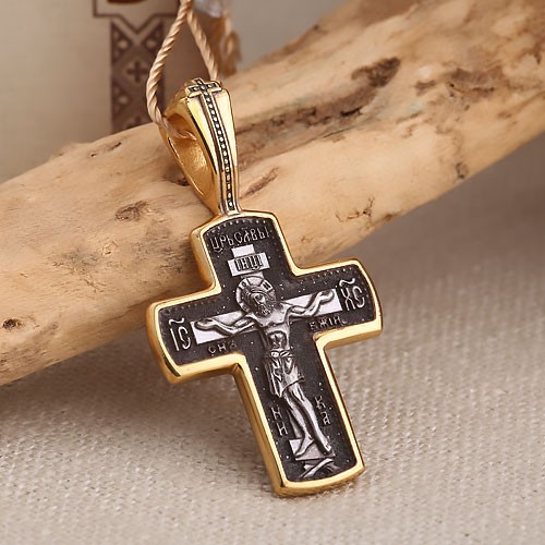 Подвеска-крестик из серебра 925° с позолотой 999°