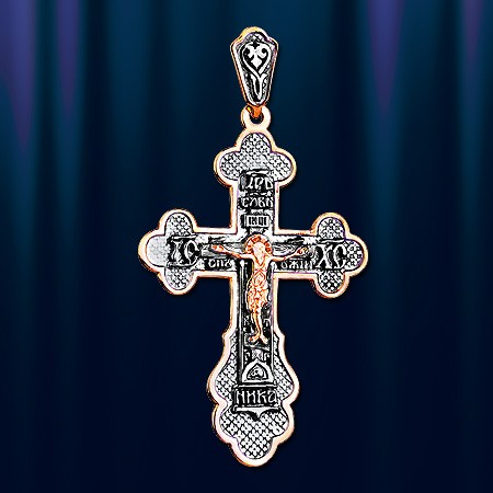 Крестик-подвеска из позолоченного серебра 925 пробы. Длина с ушком ок. 77 мм, ширина ок. 42 мм.