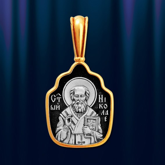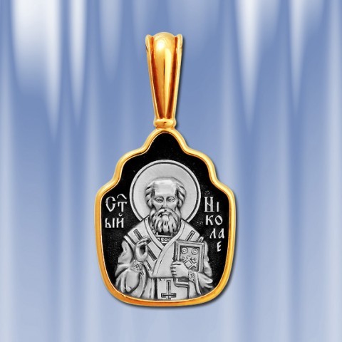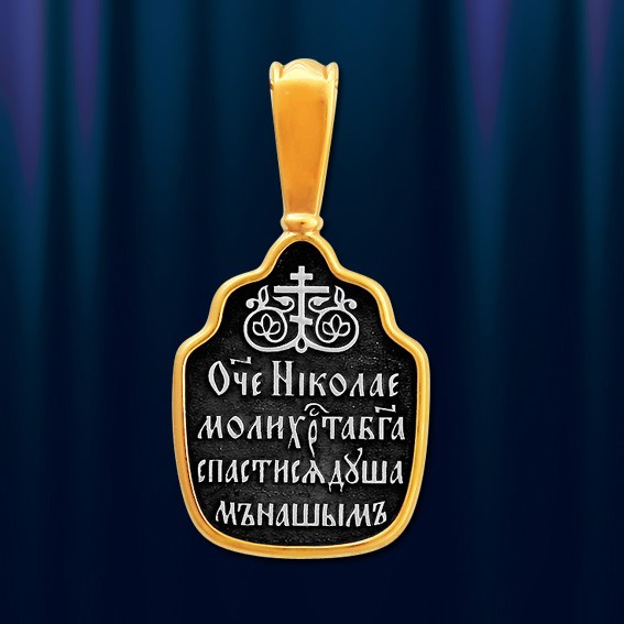 Кулон-икона из позолоченного серебра 925 пробы. Длина с ушком ок. 32 мм., ширина ок. 16 мм.