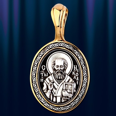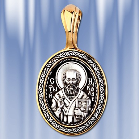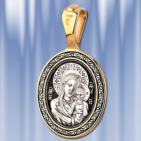 Кулон-икона из серебра 925° с позолотой 999°. Длина с ушком около 40 мм, ширина около 21 мм.