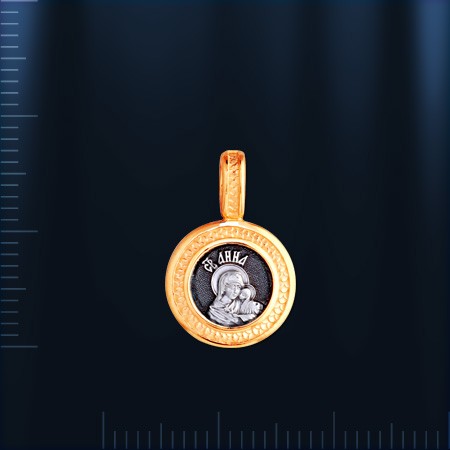 Русская икона серебряная, изготовлена ​​из серебра 925° с позолотой 999°. Длина с ушком ок. 18 мм, ширина ок. 12 мм, толщина ок. 2,5 мм.