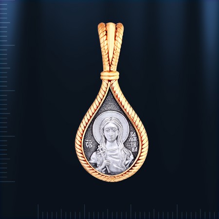 Русская икона серебряная, изготовлена ​​из серебра 925° с позолотой 999°. Длина с ушком ок. 32 мм, ширина ок. 16 мм, толщина ок. 2 мм