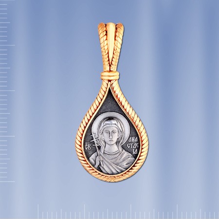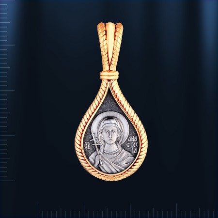 Русская икона серебряная, изготовлена ​​из серебра 925° с позолотой 999°. Длина с ушком ок. 32 мм, ширина ок. 16 мм, толщина ок. 2 мм