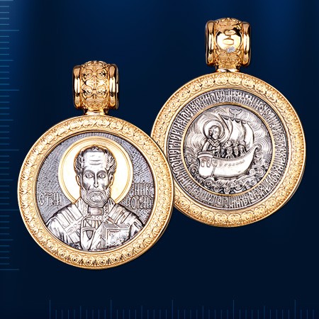 Икона из позолоченного серебра 925 пробы. Длина с ушком ок. 38,0 мм, ширина ок. 28,0 мм.