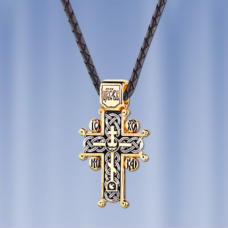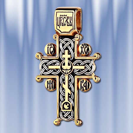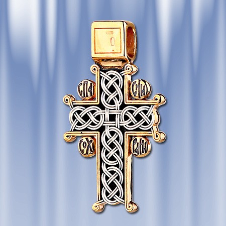 Крест-подвеска из серебра 925° с позолотой 999°. Длина с ушком ок. 45 мм, ширина ок. 26 мм.