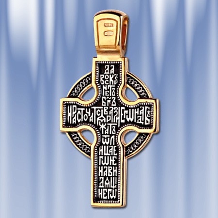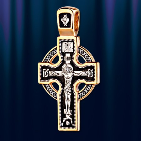Крест-подвеска из серебра 925° с позолотой 999°. Длина с ушком ок. 39 мм, ширина ок. 20 мм.