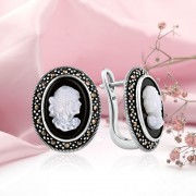 Вставка: 2 Оникса овальной формы 14,0 х 10,0 мм; Перламутр 11,0 х 8,0 мм; Марказит Ø 2,0 мм