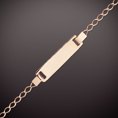 Детский браслет из красного золота 585 пробы с пластинкой. Длина 14,0 см