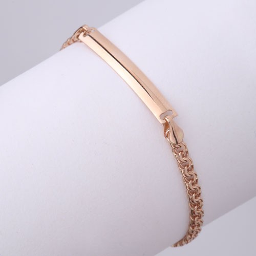 Детский браслет из красного золота 585° с пластиной для гравировки имени или даты рождения.
