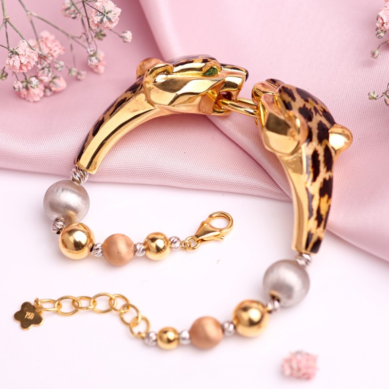 Элегантный браслет из желтого золота 750 пробы, со вставками из красного и белого золота! Уникальная возможность подчеркнуть женственность и элегантность женских рук.
