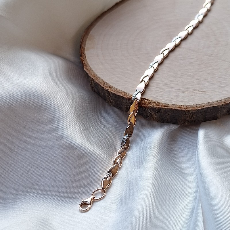 Русское золото 585 пробы Отличный браслет из классического розового золота 585 пробы с акцентами из