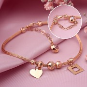 красного золота в форме шнура с очаровательными подвесками. Благодаря алмазной огранке подвески получили оригинальный узор. Такой браслет прекрасно украсит изящные женские ручки! Прекрасный подарок близкому человеку!