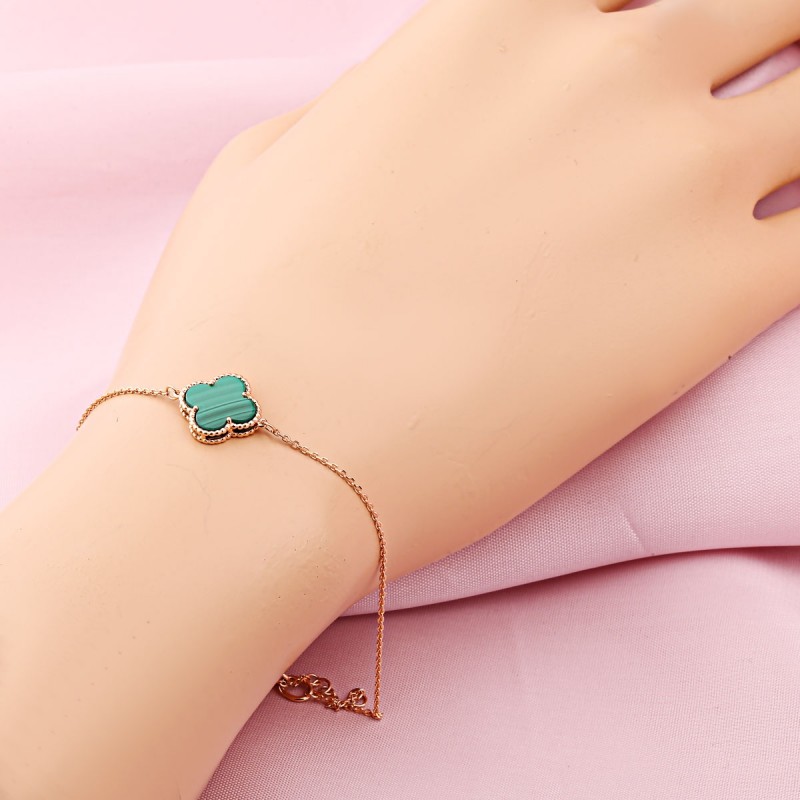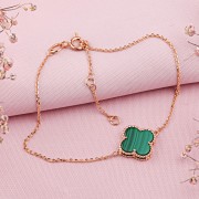 красного золота 585 пробы с малахитом – элегантное украшение, в котором природная красота сочетается с изысканной геометрией. Центральный элемент в форме клеверного листа символизирует гармонию и стильное завершение дизайна.