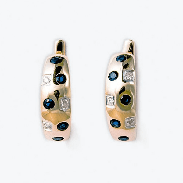 Золотые серьги с сапфирами и бриллиантами