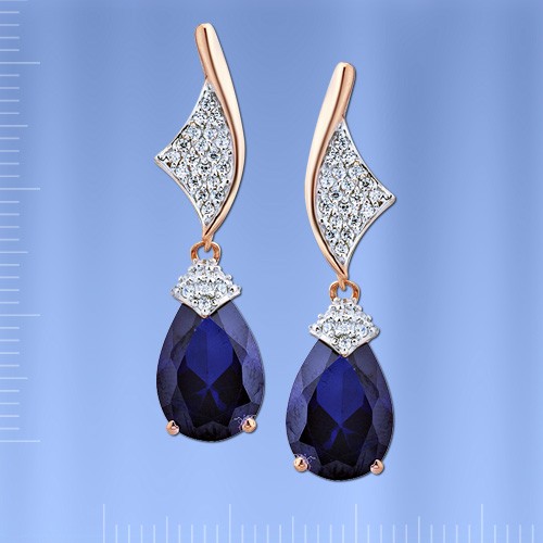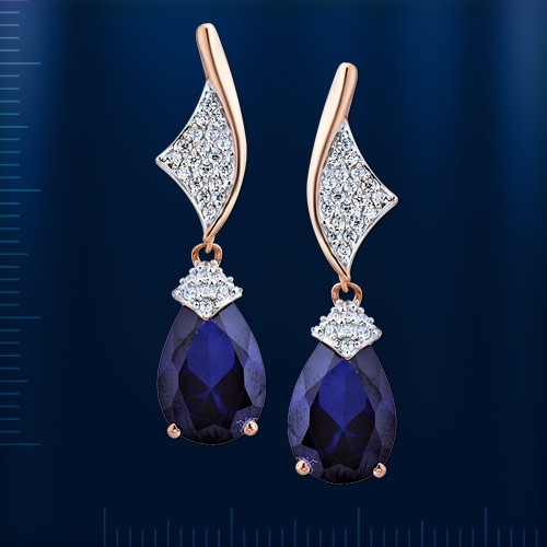 Серьги из красного/белого золота 585°, украшенные 2 корундами сапфирами (12,0 х 8,0 мм 1330 карат) и 58 фианитами ¢ 1,0 мм 0,100. Эти ослепительные серьги поразят вас красотой и элегантностью