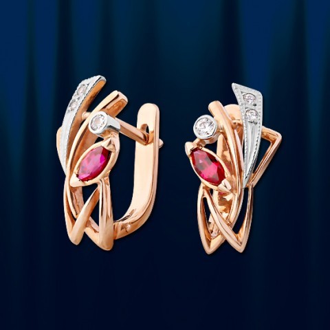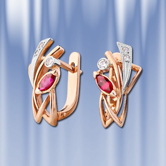 Серьги из русского золота с корундом, биколор.