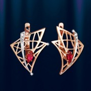 Серьги из русского золота с цирконом, корундом, биколор.