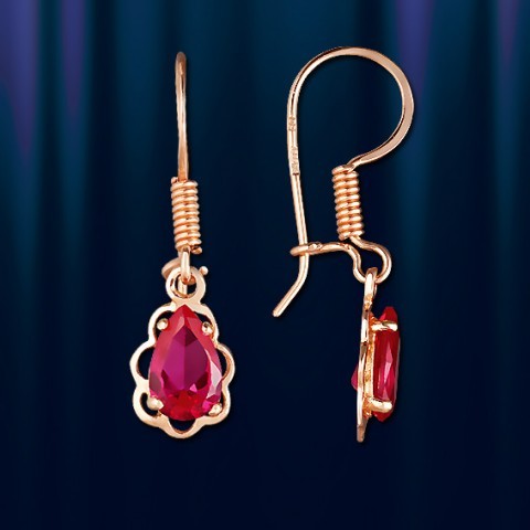 ALVIGO- Таллинская ювелирная фабрика Серьги из русского красного золота 585 пробы с синтетическим рубином.