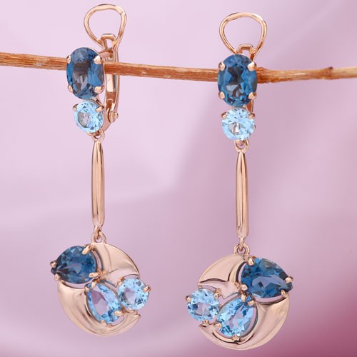 Серьги из русского красного золота 585° с 2 топазами Лондон 8,0 х 6,0 мм 2,93, 2 топазами Лондон 8,0 х 5,0 мм 2,38, 2 топазами 7,0 х 5,0 мм 1,57, 2 топазами ¢ 5,0 мм 2,0