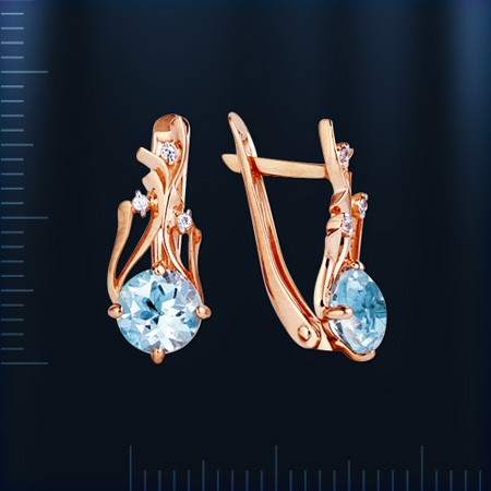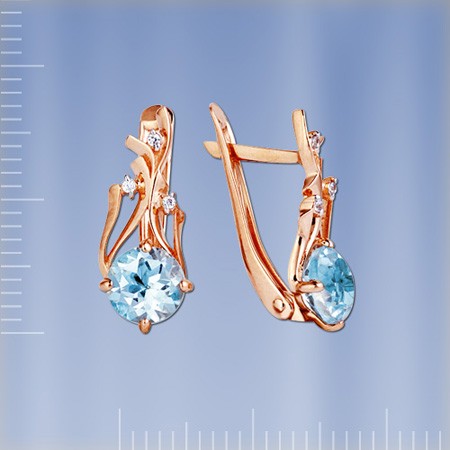 Серьги из красного золота 585°, украшенные топазом (7 мм) и фианитами 1 мм. Эти ослепительные серьги порадуют вас своей красотой и элегантностью.