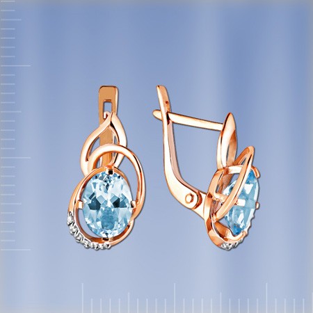 Серьги из красного золота 585°, украшенные 2 топазами (8 х 6 мм 0,587 карата) и 12 фианитами ¢ 1 мм. Эти ослепительные серьги порадуют вас своей красотой и элегантностью.