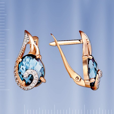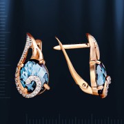 Серьги из красного золота 585°, украшенные 2 топазами (8 х 10 мм 0,124 карата) и 30 фианитами ¢ 1 мм. Эти ослепительные серьги порадуют вас красотой и элегантностью.