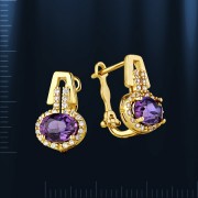 Серьги из красного золота 585°, украшенные 2 аметистами (6 х 9 мм) и 44 циркониями Ø 1 мм. Эти ослепительные серьги поразят вас красотой и элегантностью. Высота ок. 17 мм., ширина ок. 10 мм. С безопасным и надежным замком.